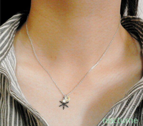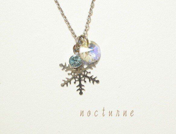 雪の結晶のモチーフとライトブルーのクリスタル、スワロフスキーを合わせたネックレスです。