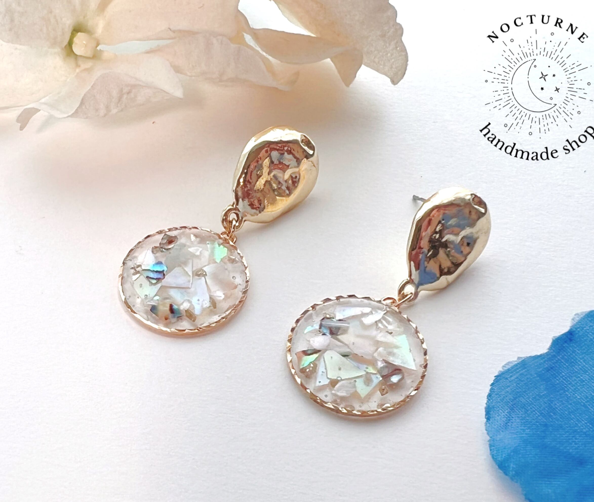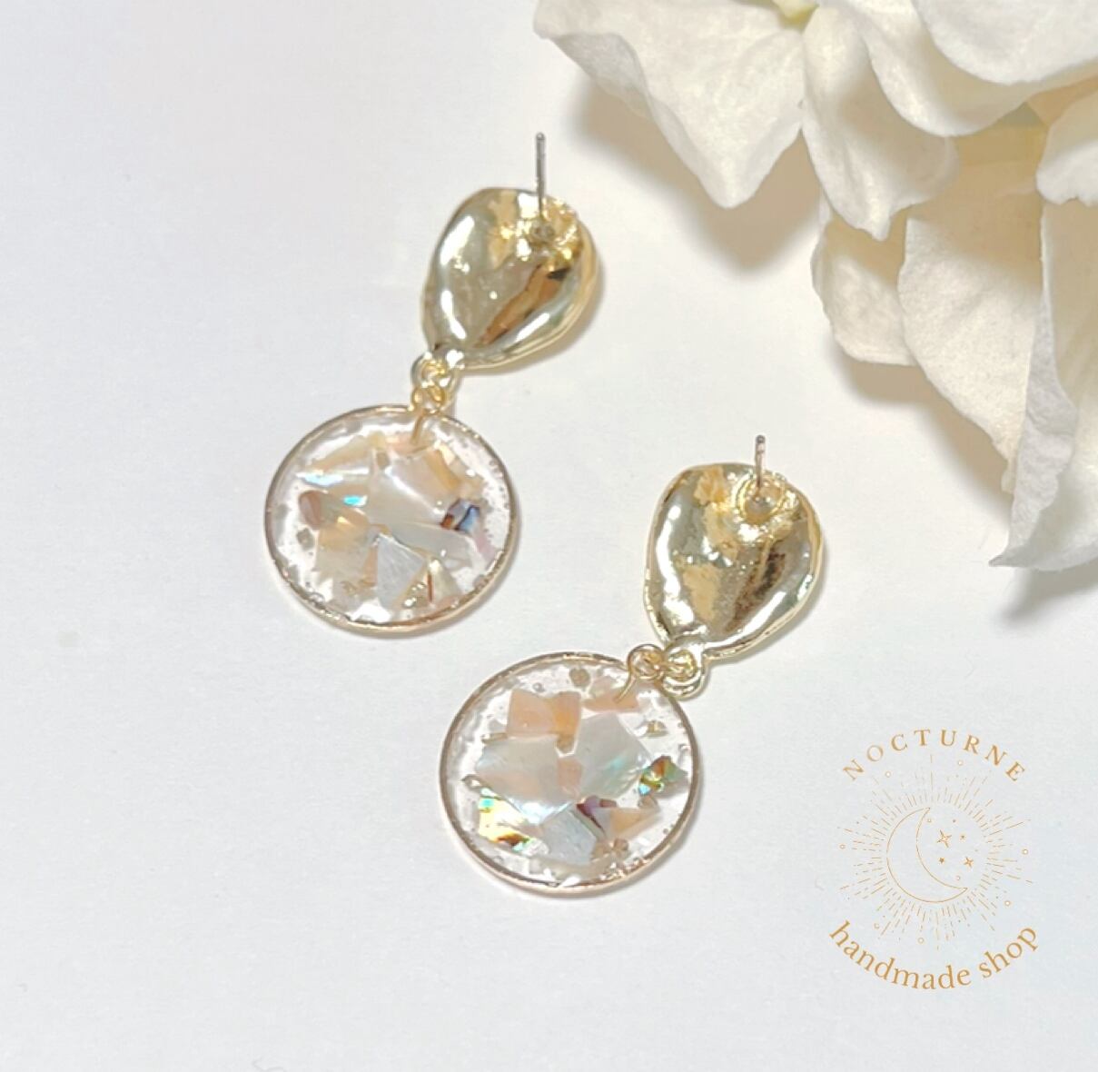 material:ゴールドピアス(チタン、15mm)、シェルパーツ(レジン、18mm)