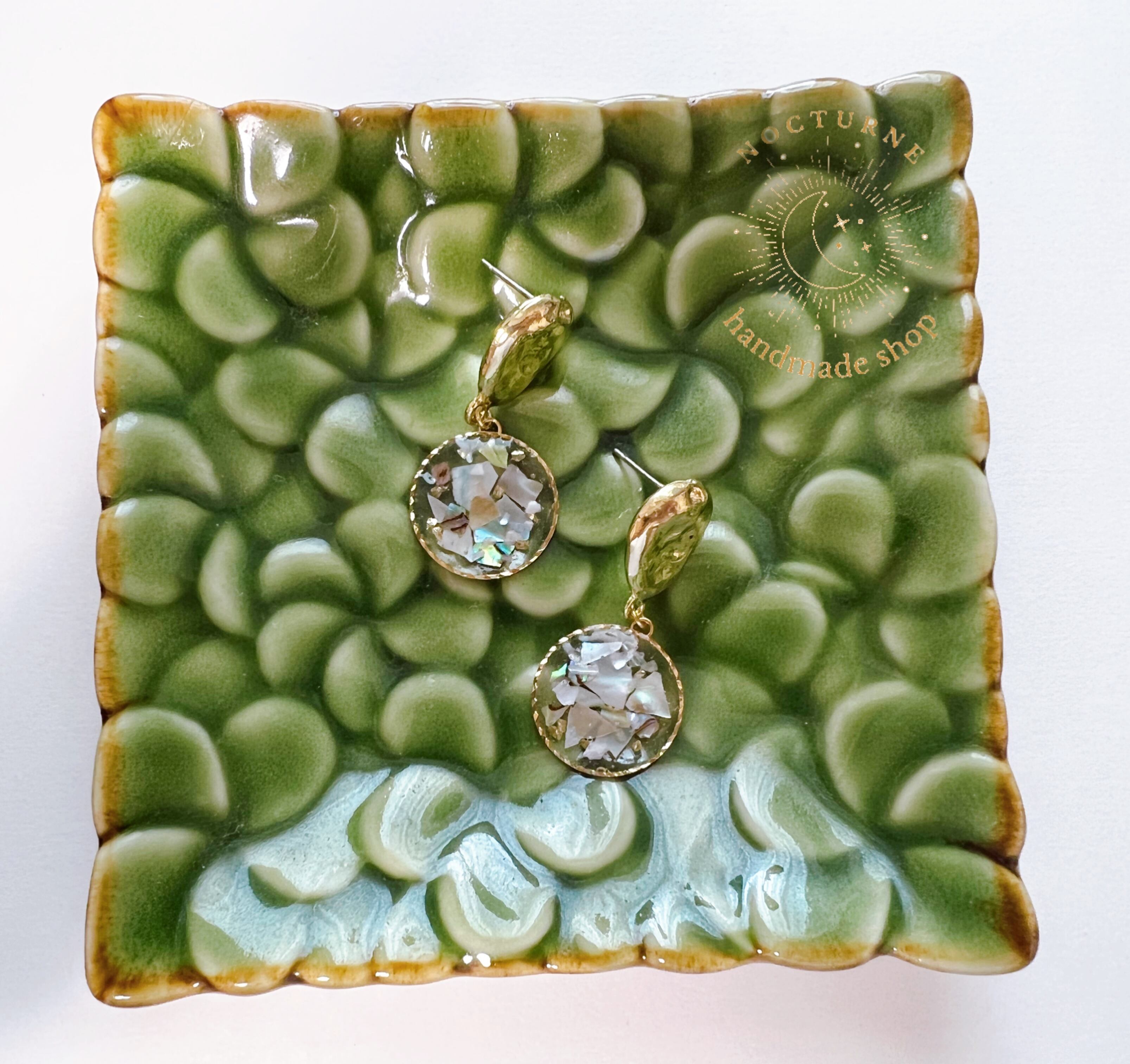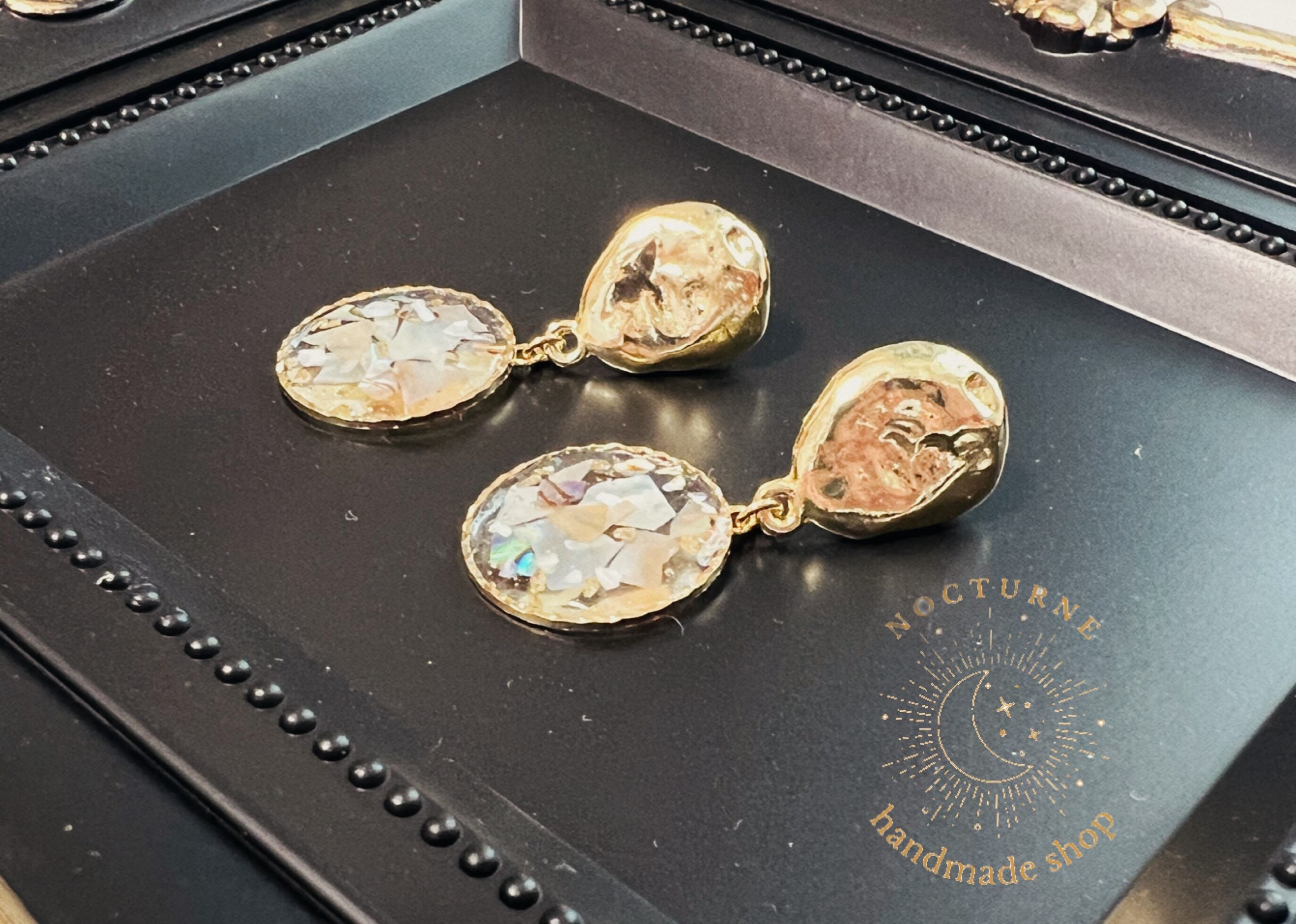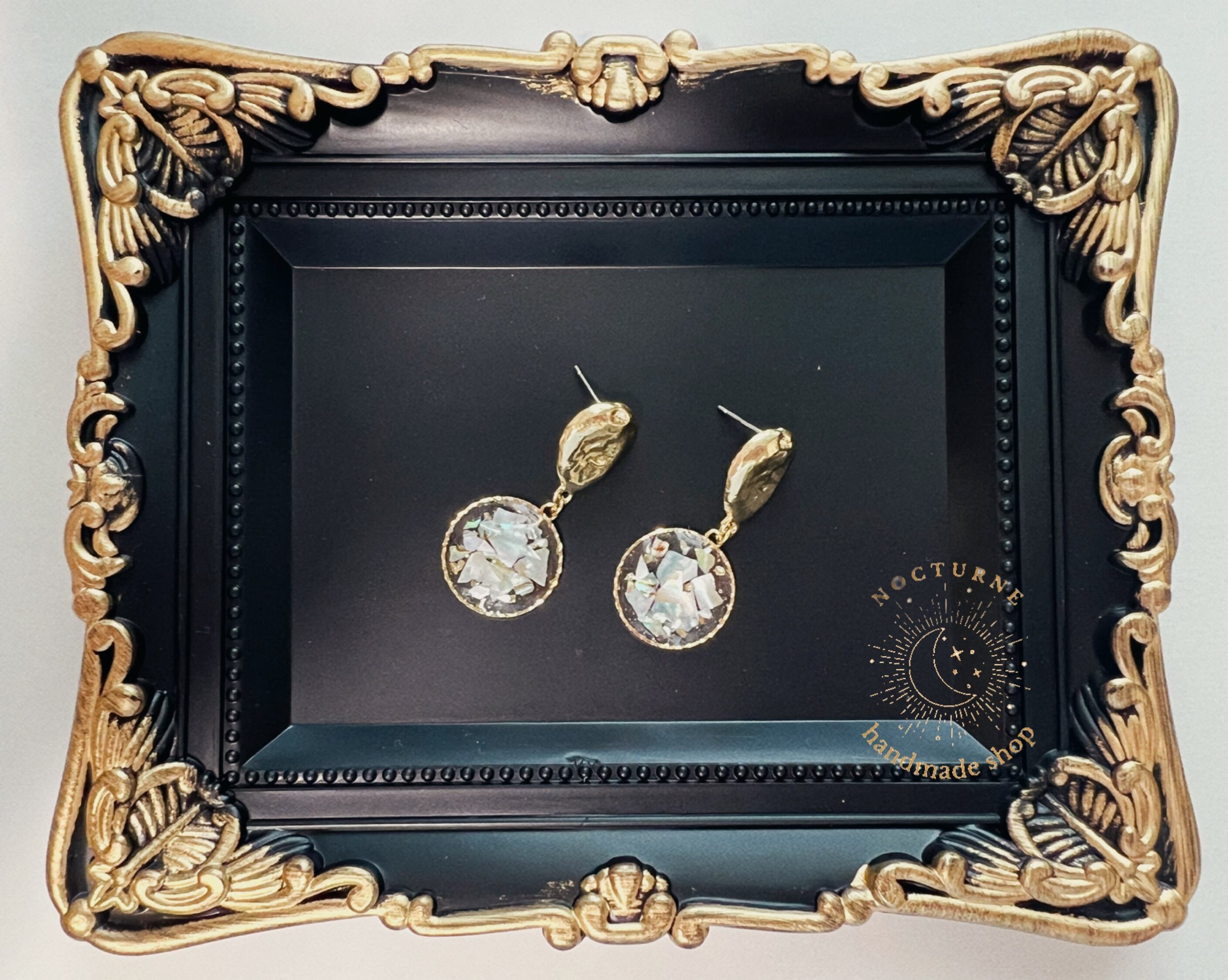 ピアスポストはチタン、重厚なゴールドパーツがセッティングされており、キラキラとしたシェルが華やかを演出します。