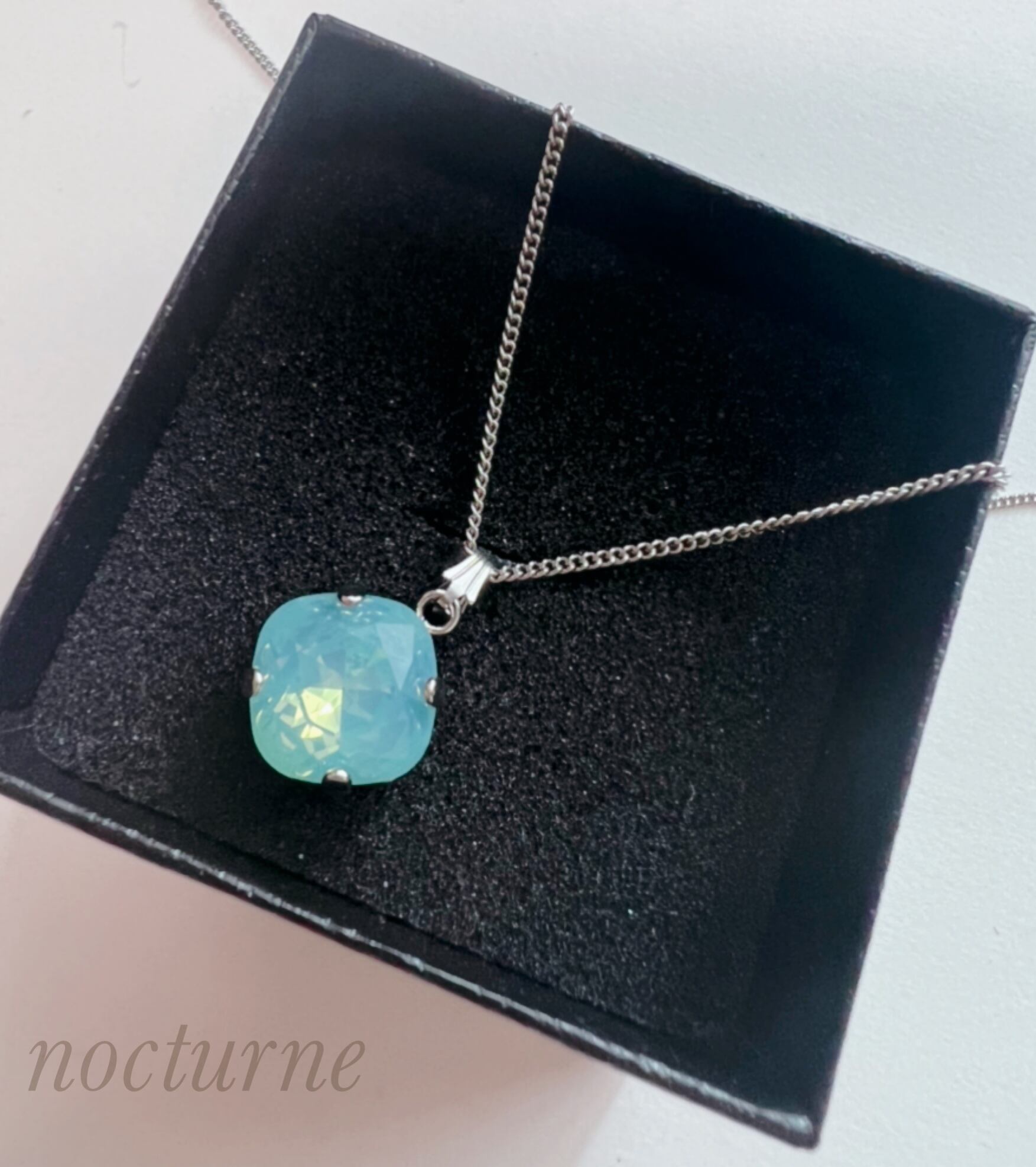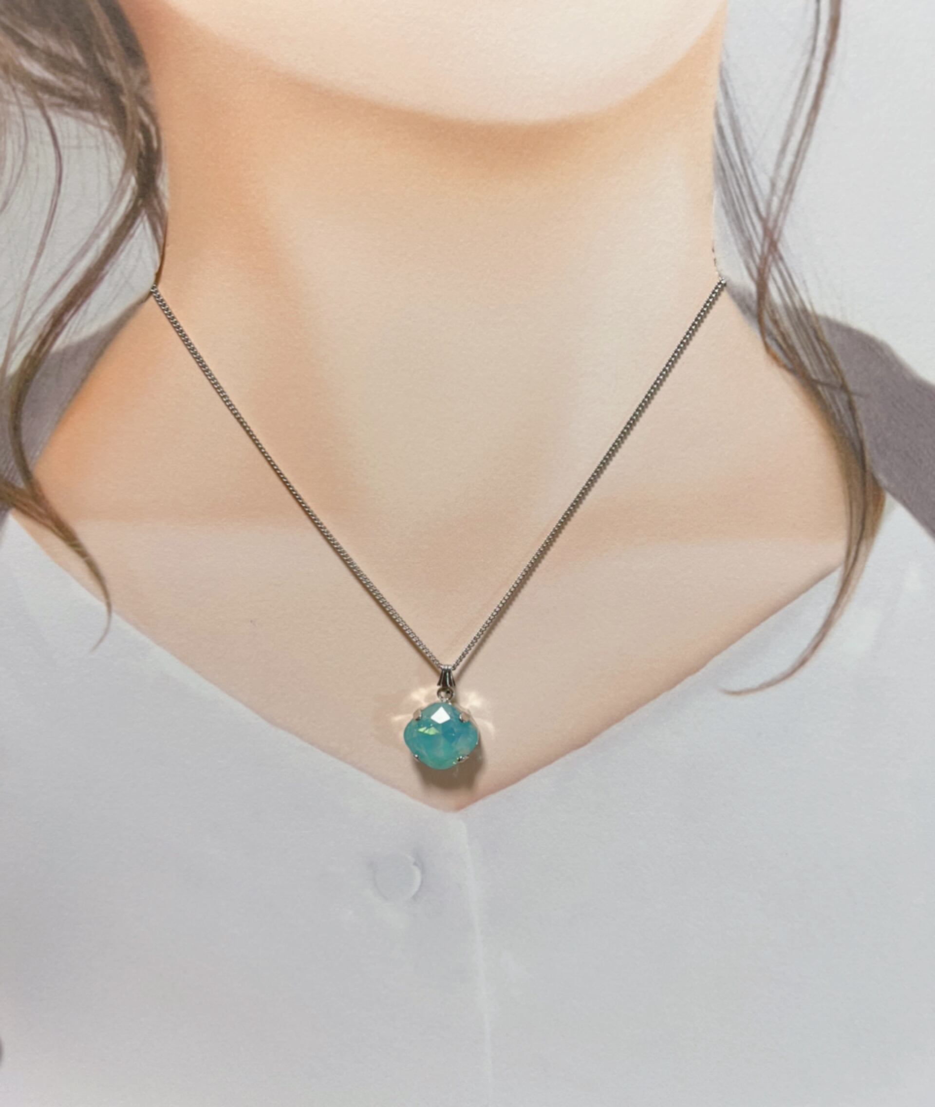とろりとした色味が特徴のエアーブルートパーズのスワロフスキーを一粒下げたシンプルなネックレスです。