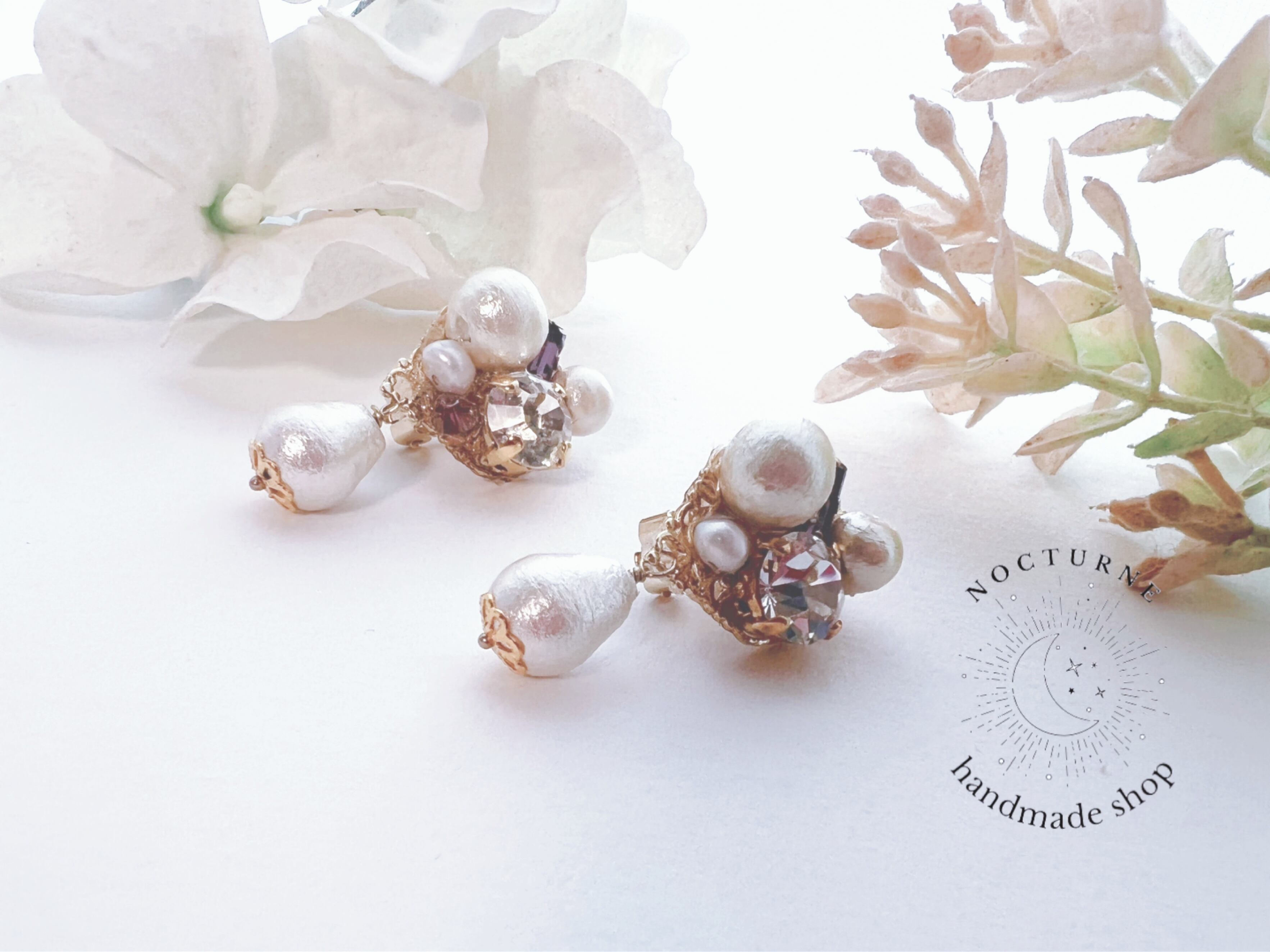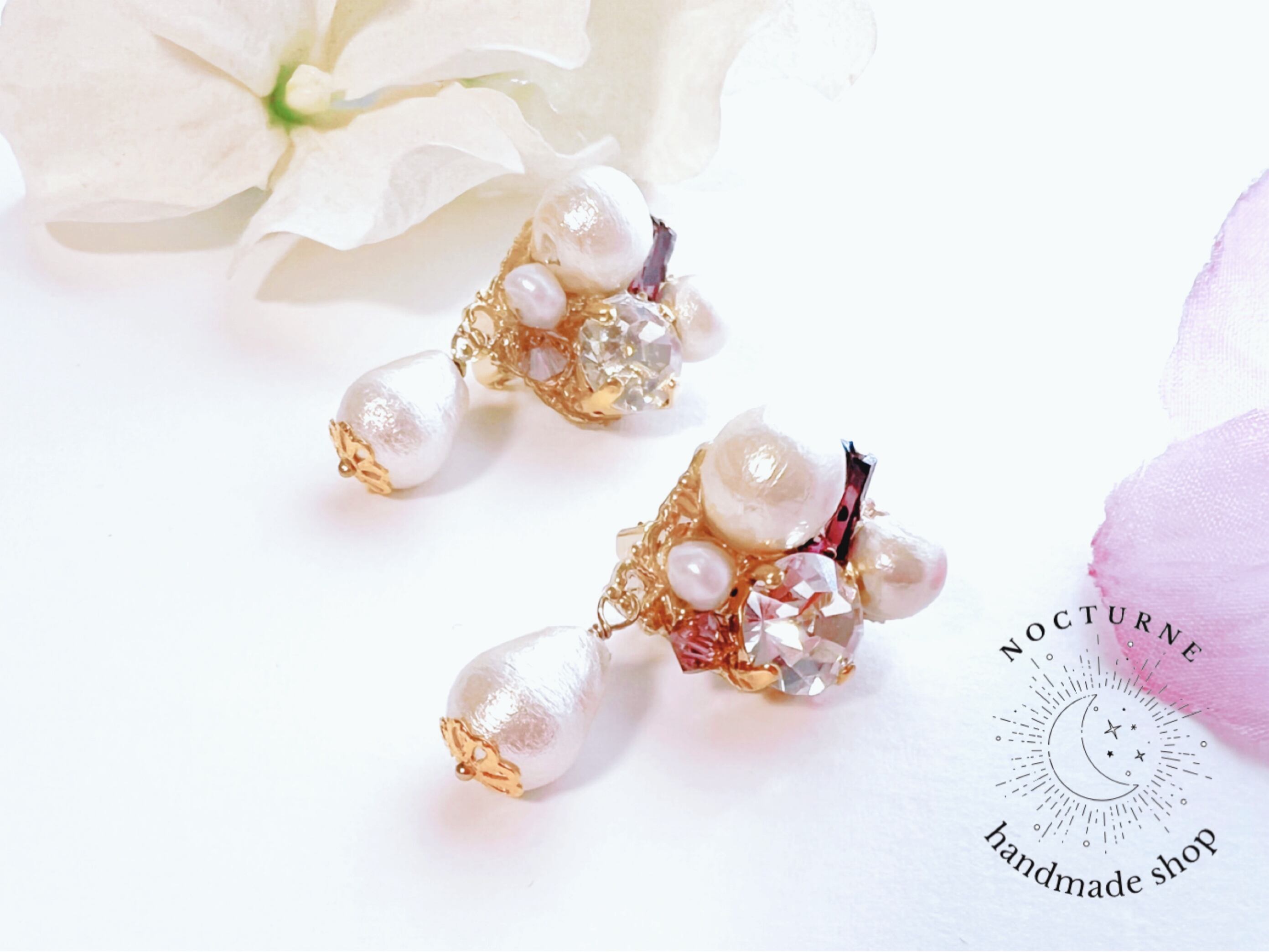 #コットンパール #ブライダル #お呼ばれ #スワロフスキー #イヤリング #ビジュー