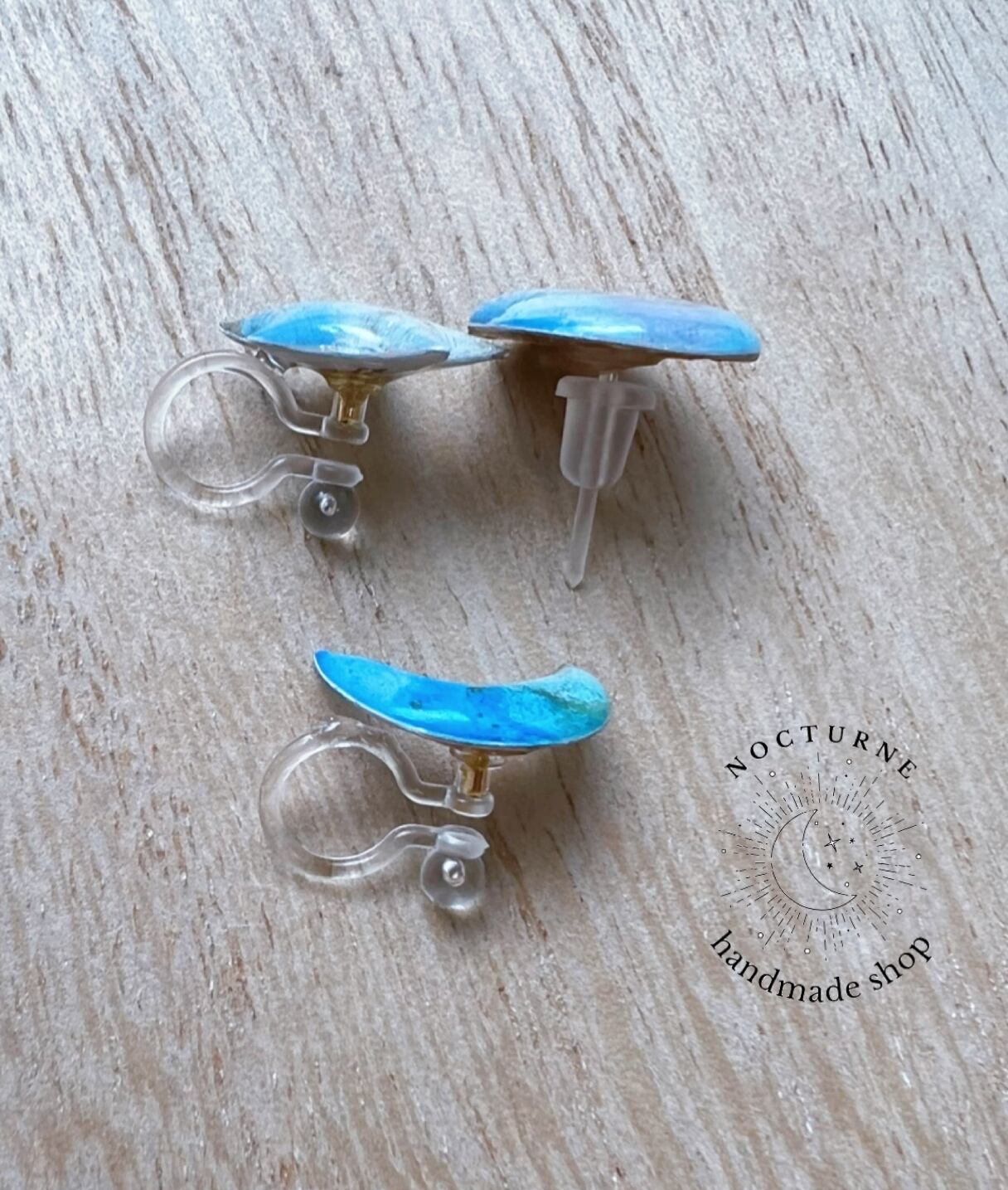 イヤリングは樹脂ノンホールピアスで作成しております。