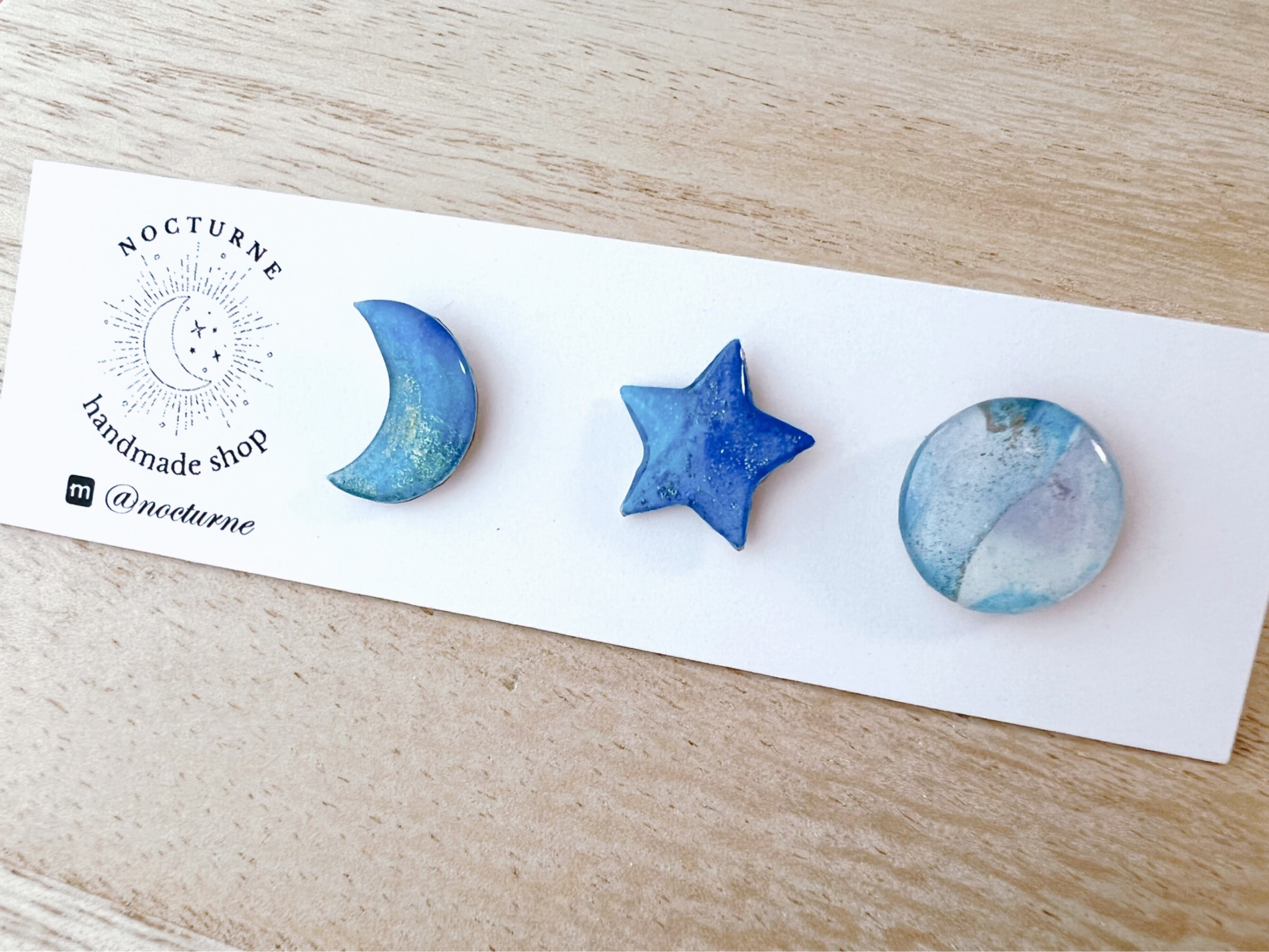 星、三日月、まんまるの月の3つセットです。