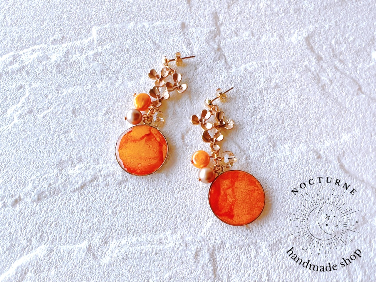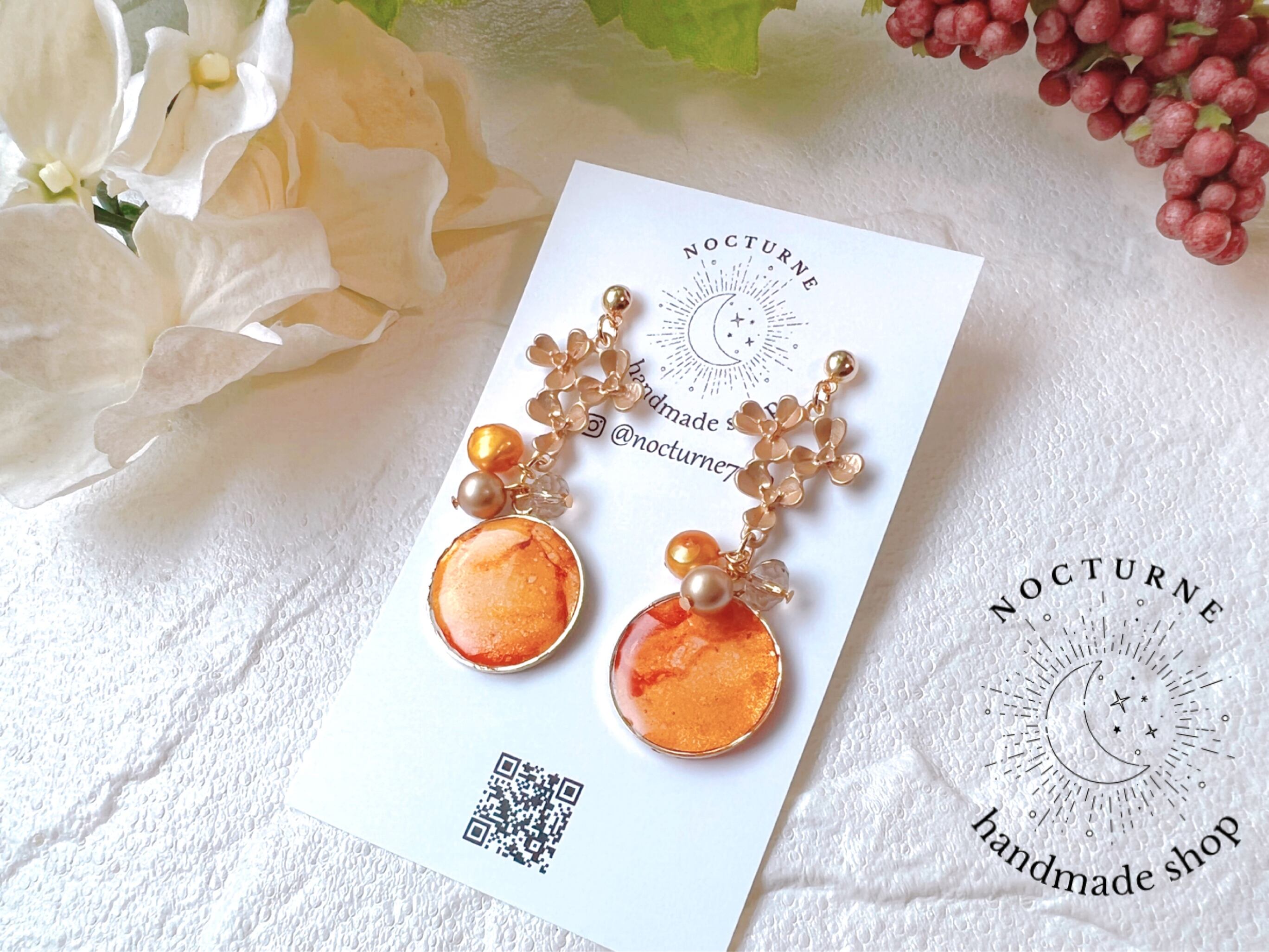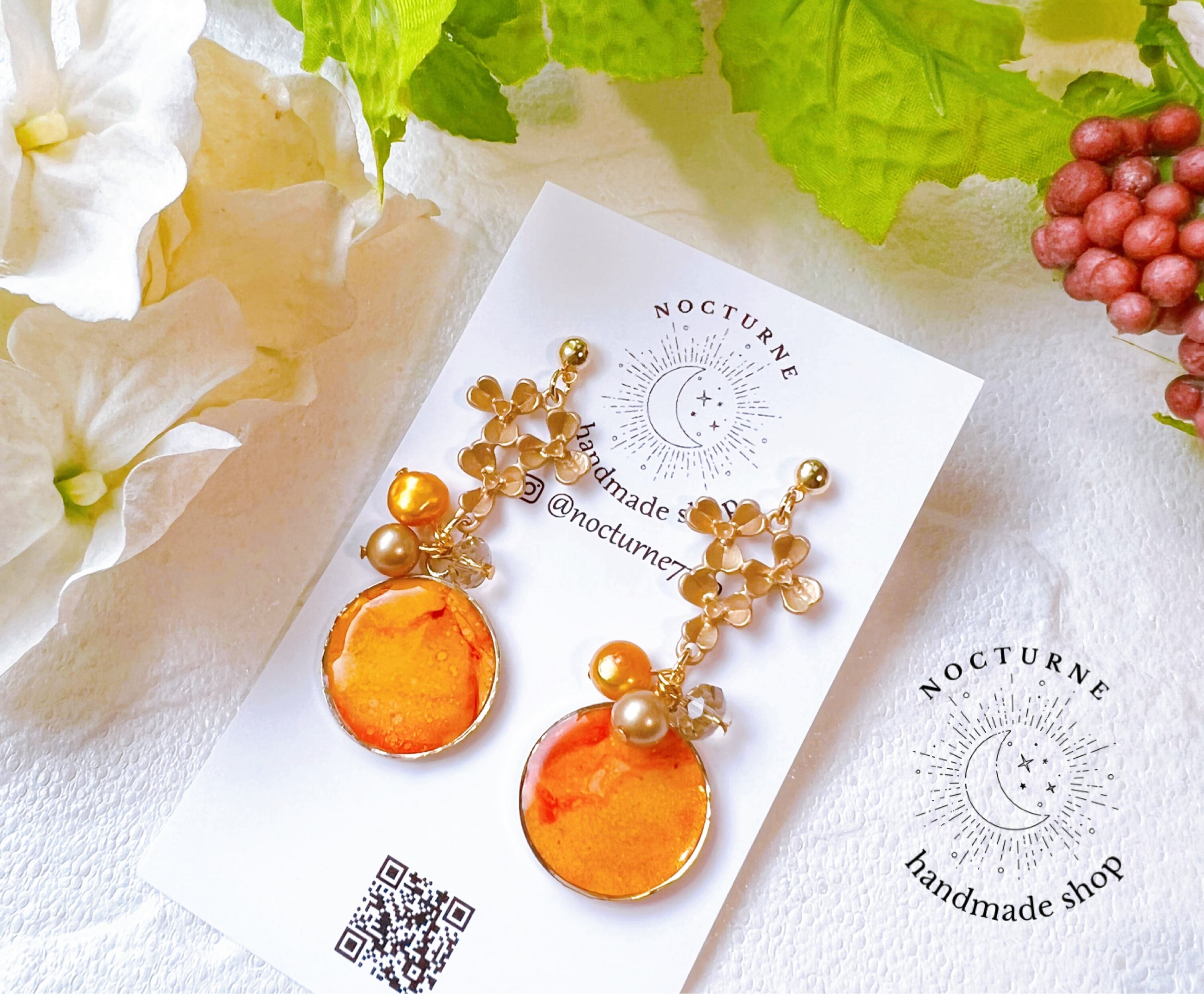 金木犀カラーでまとめた、秋色を身にまとえるピアスになります。