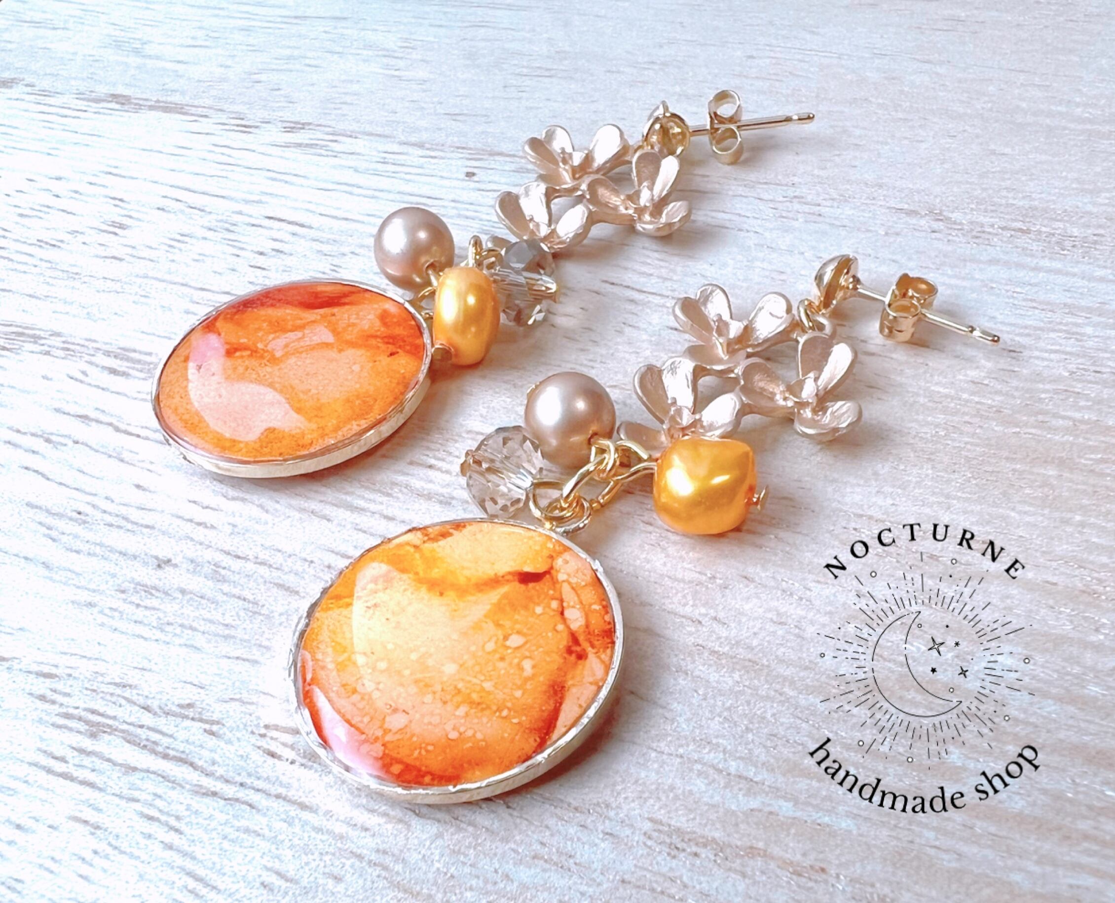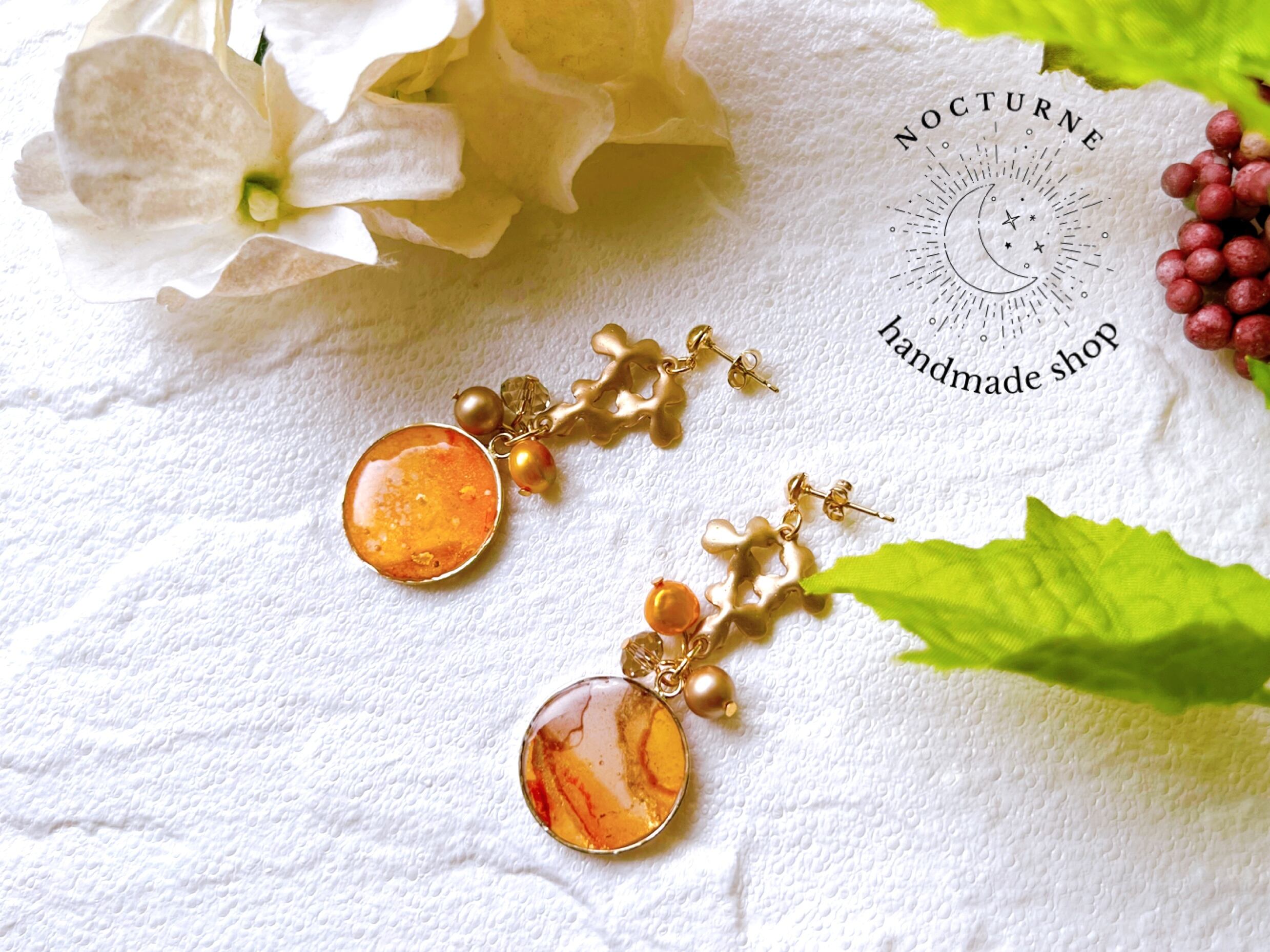 material:金木犀パーツ(マットゴールドメッキ)、淡水パール、ゴールドシャドービーズ、アルコールインクアート