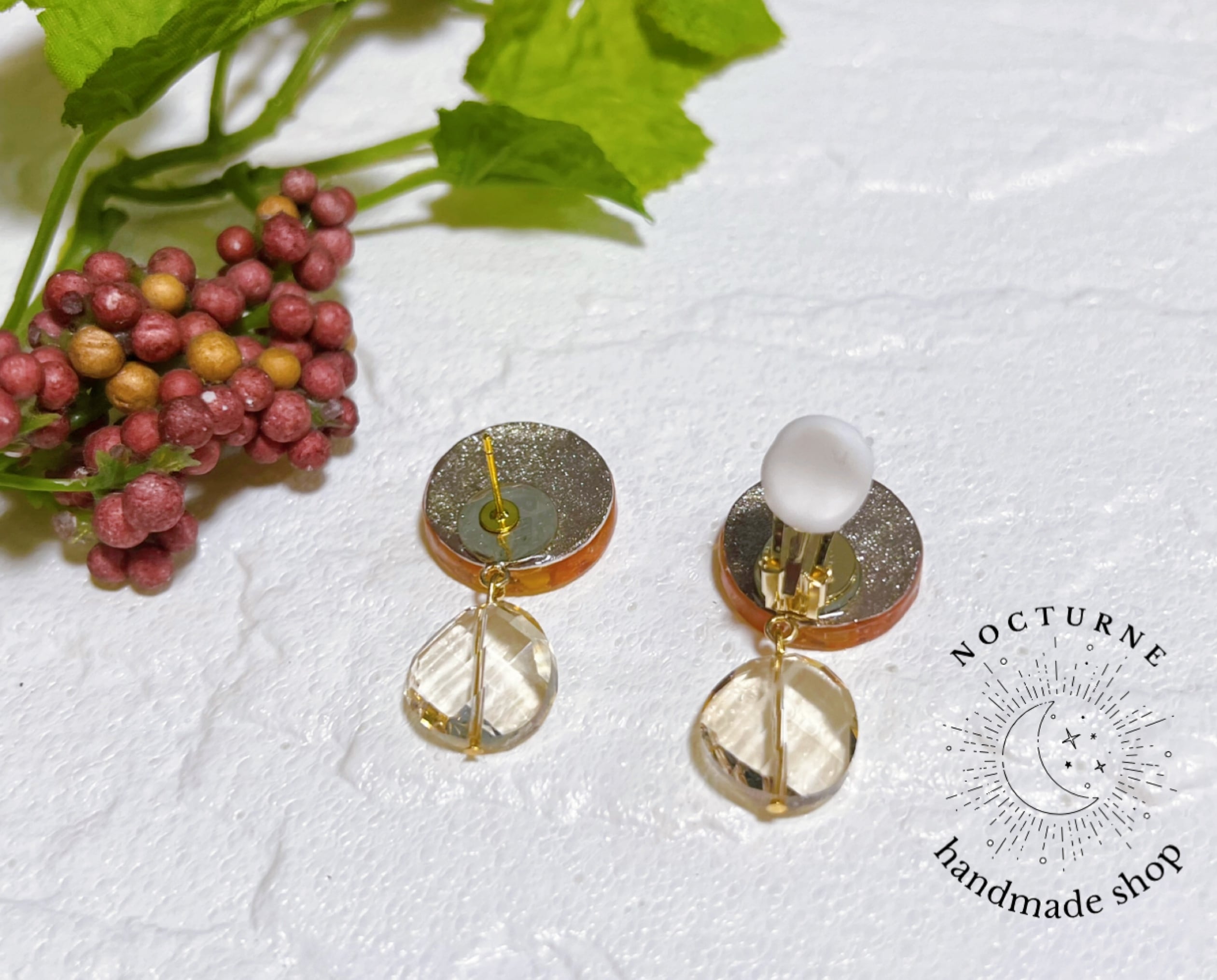 裏面はゴールド加工にしておりますので、ピアスかイヤリングかご選択ください。