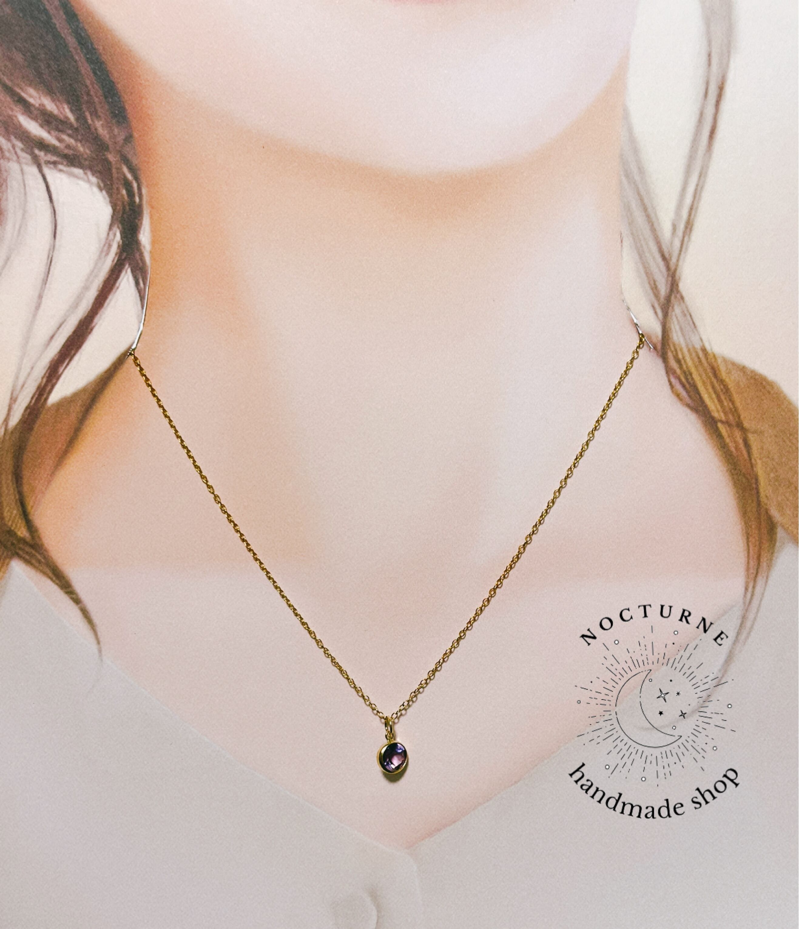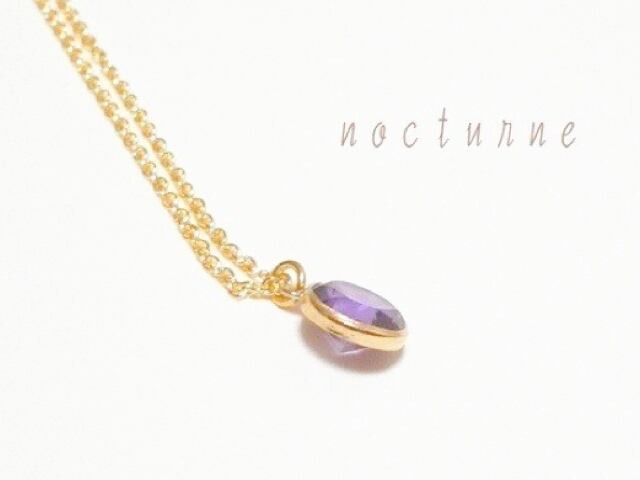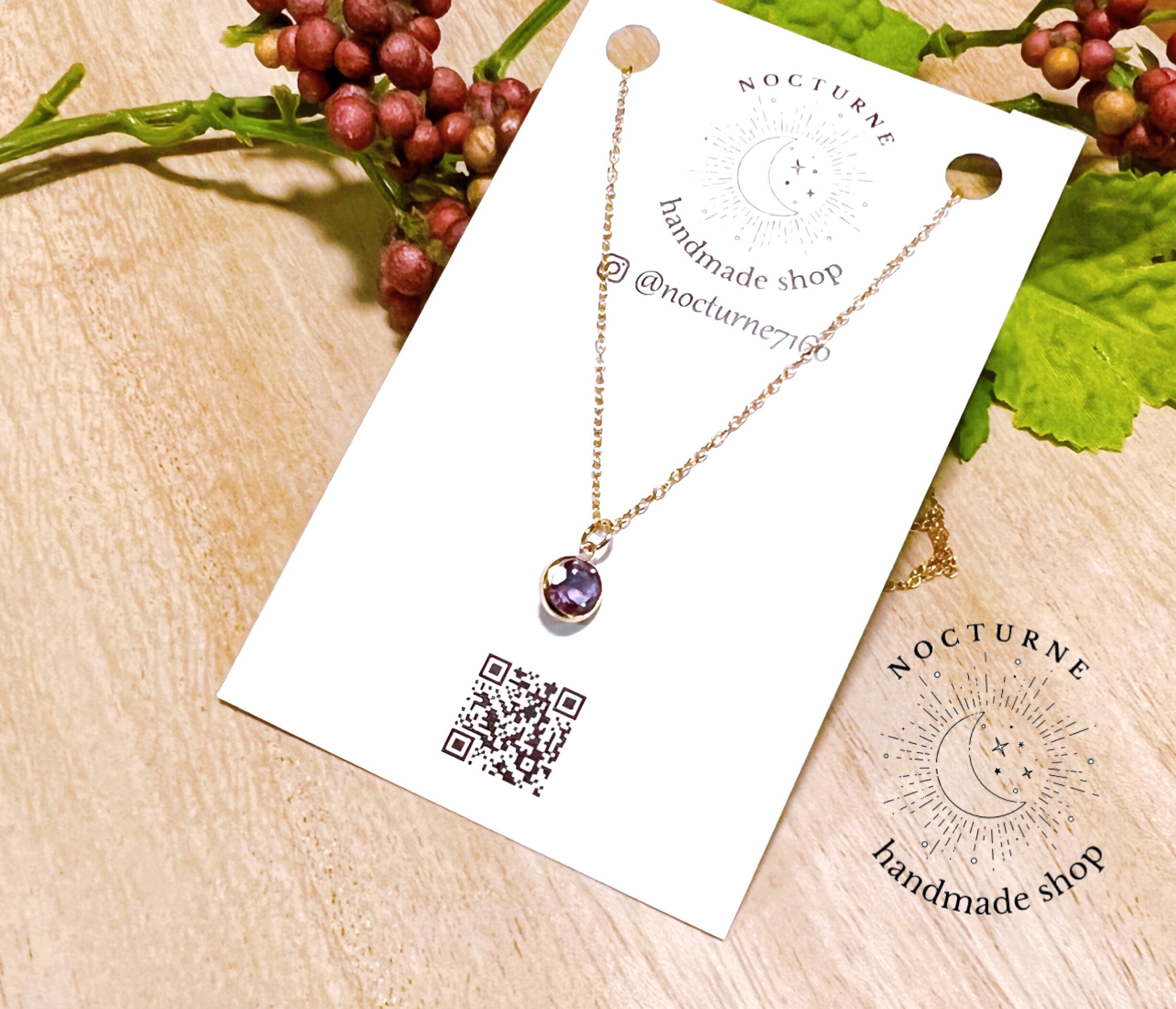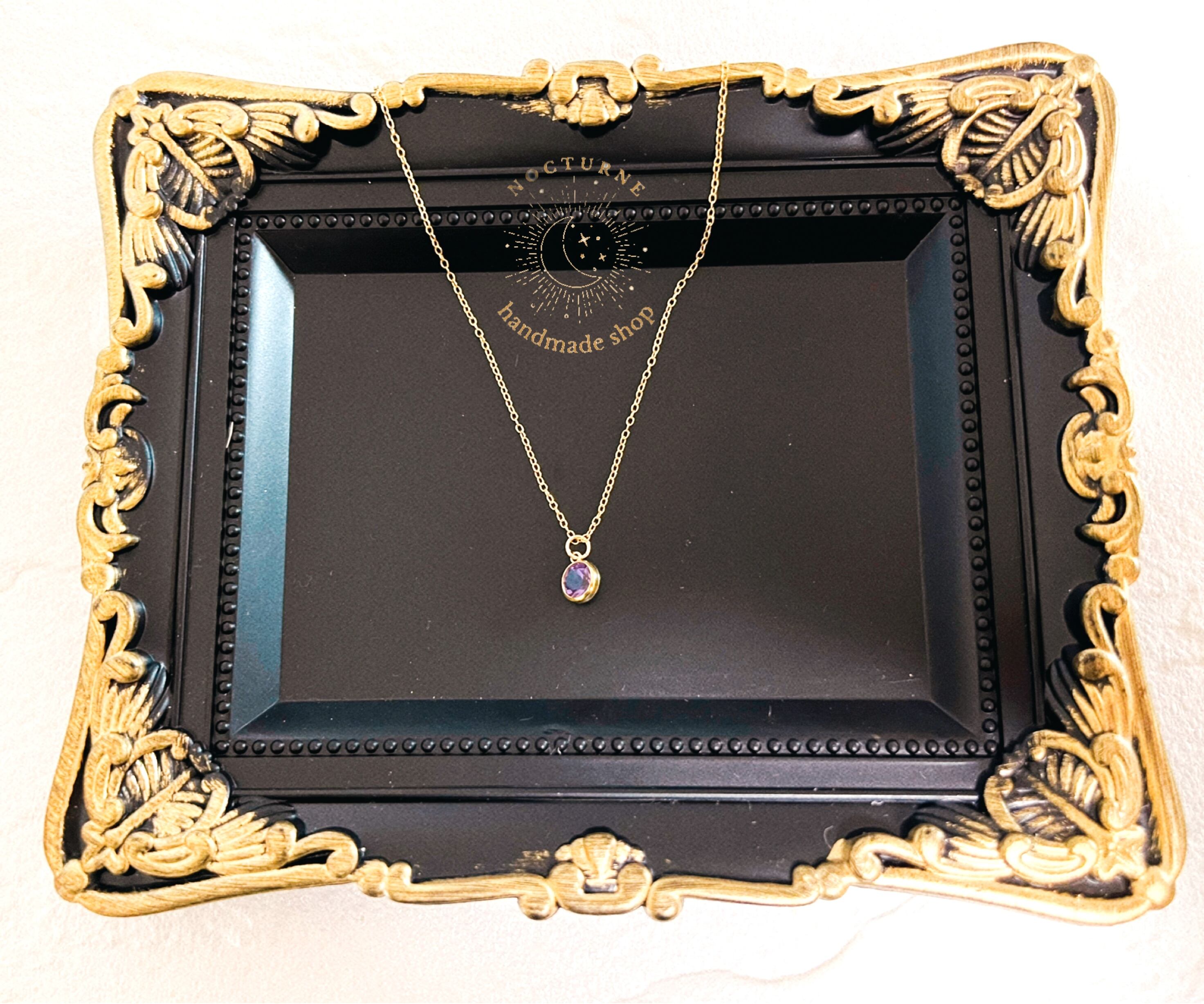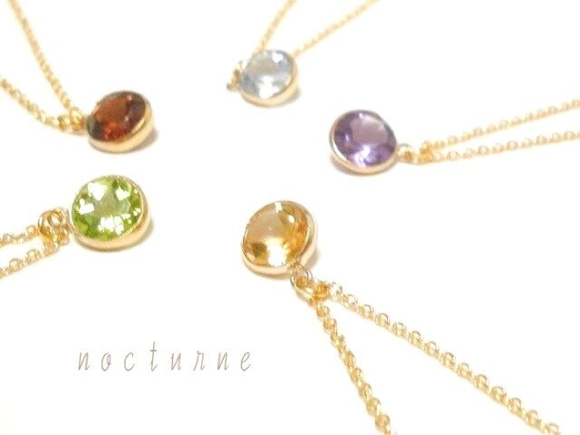 シンプルな14kgf フレームにベゼルセッティングされた天然石を一粒下げた綺麗なネックレスです。
