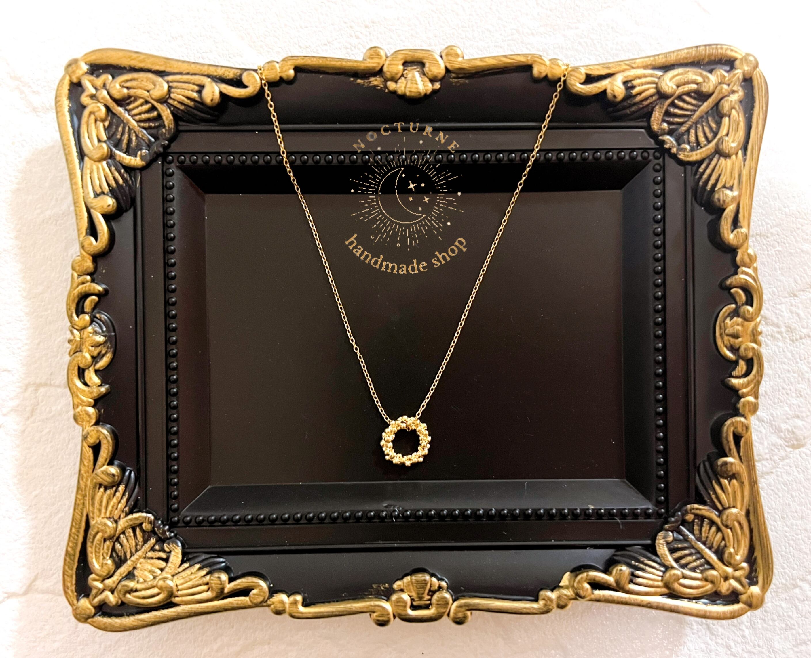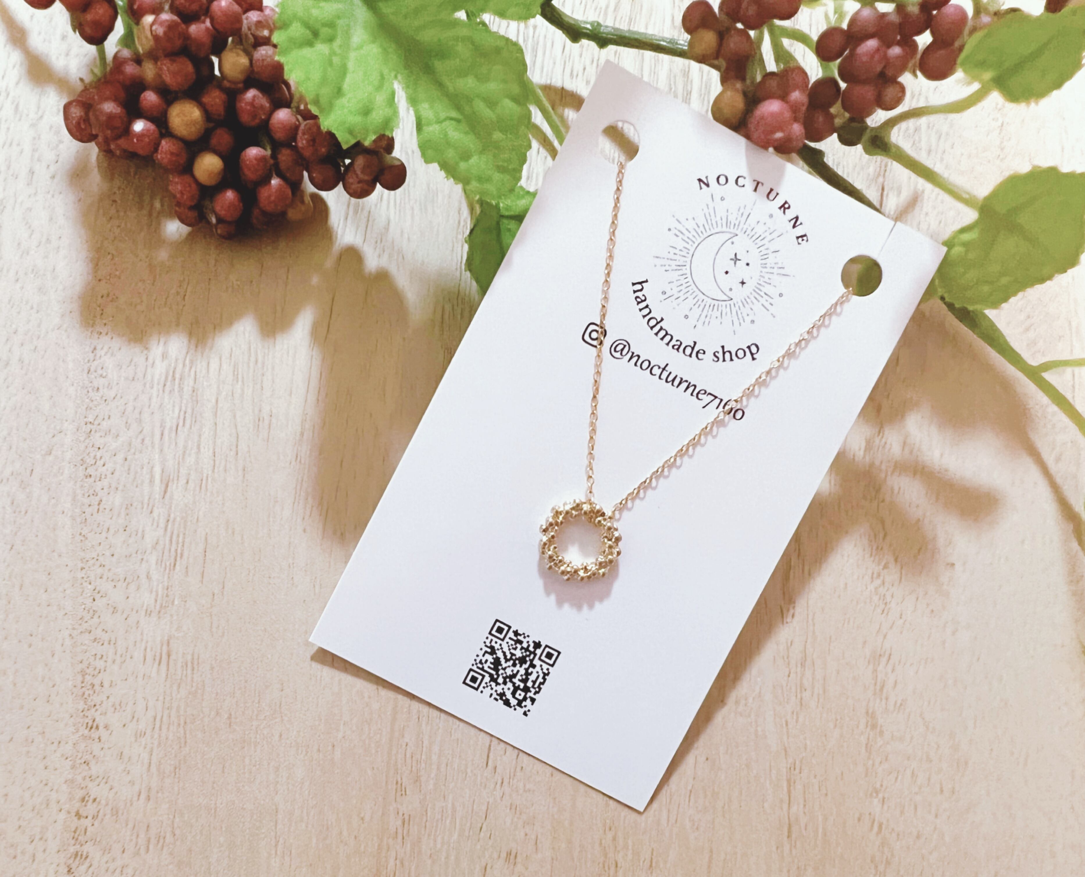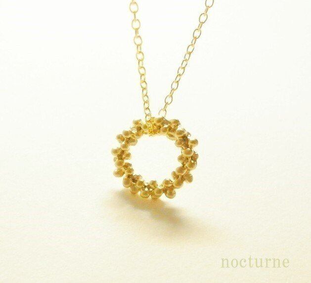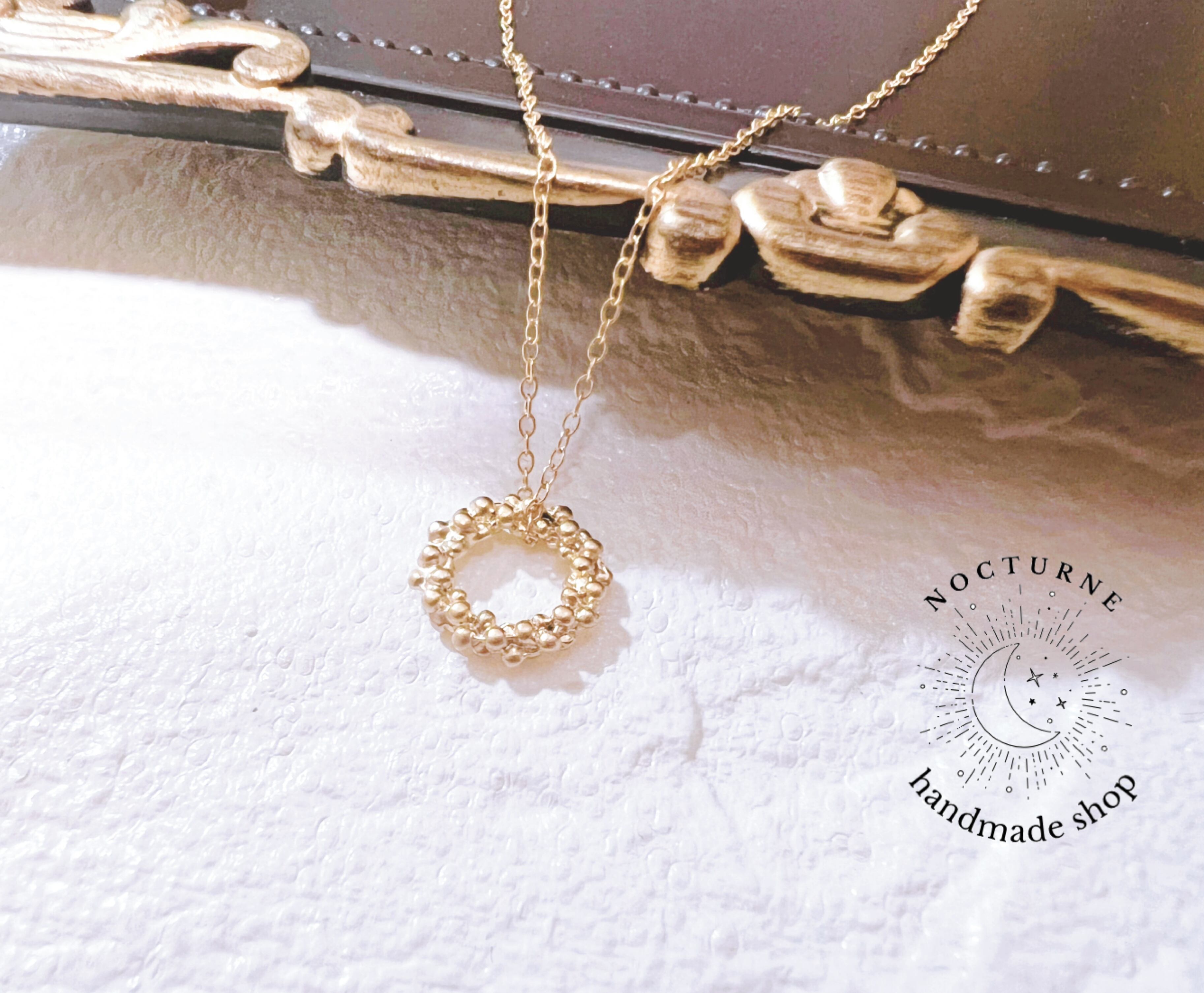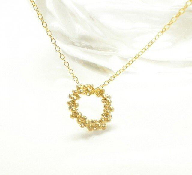 小さな気泡が集まったようなブリリアントリングを14kgfのネックレスに通しました。