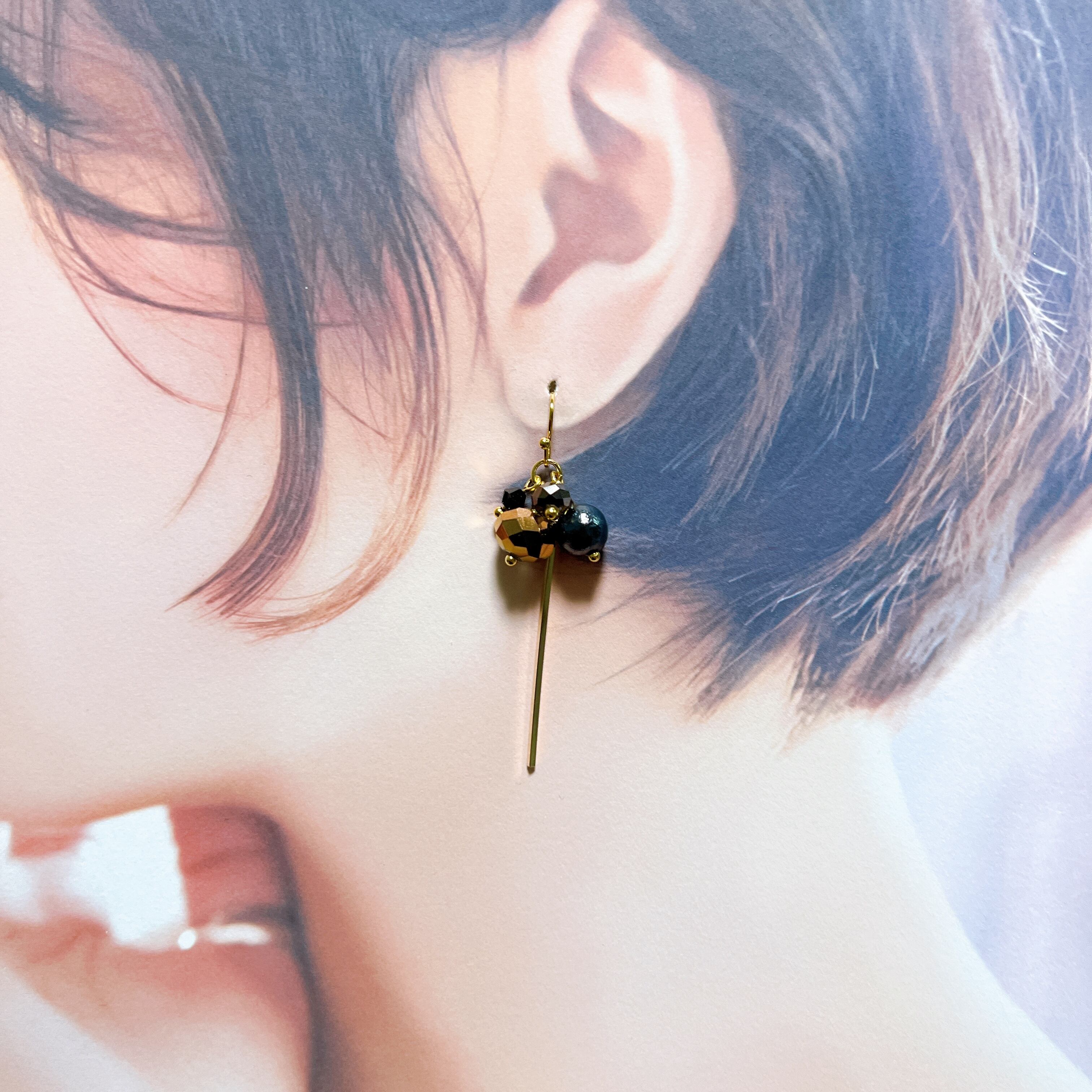 ブラックゴールドビーズとブラックコットンパールのピアス