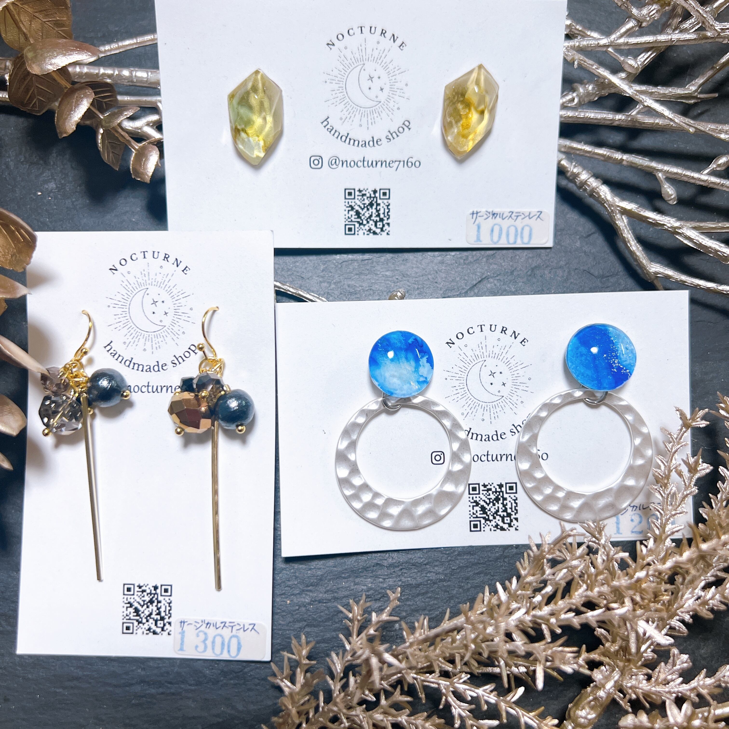 ピアスの金具部分、その他金具はすべてサージカルステンレスとなっています。