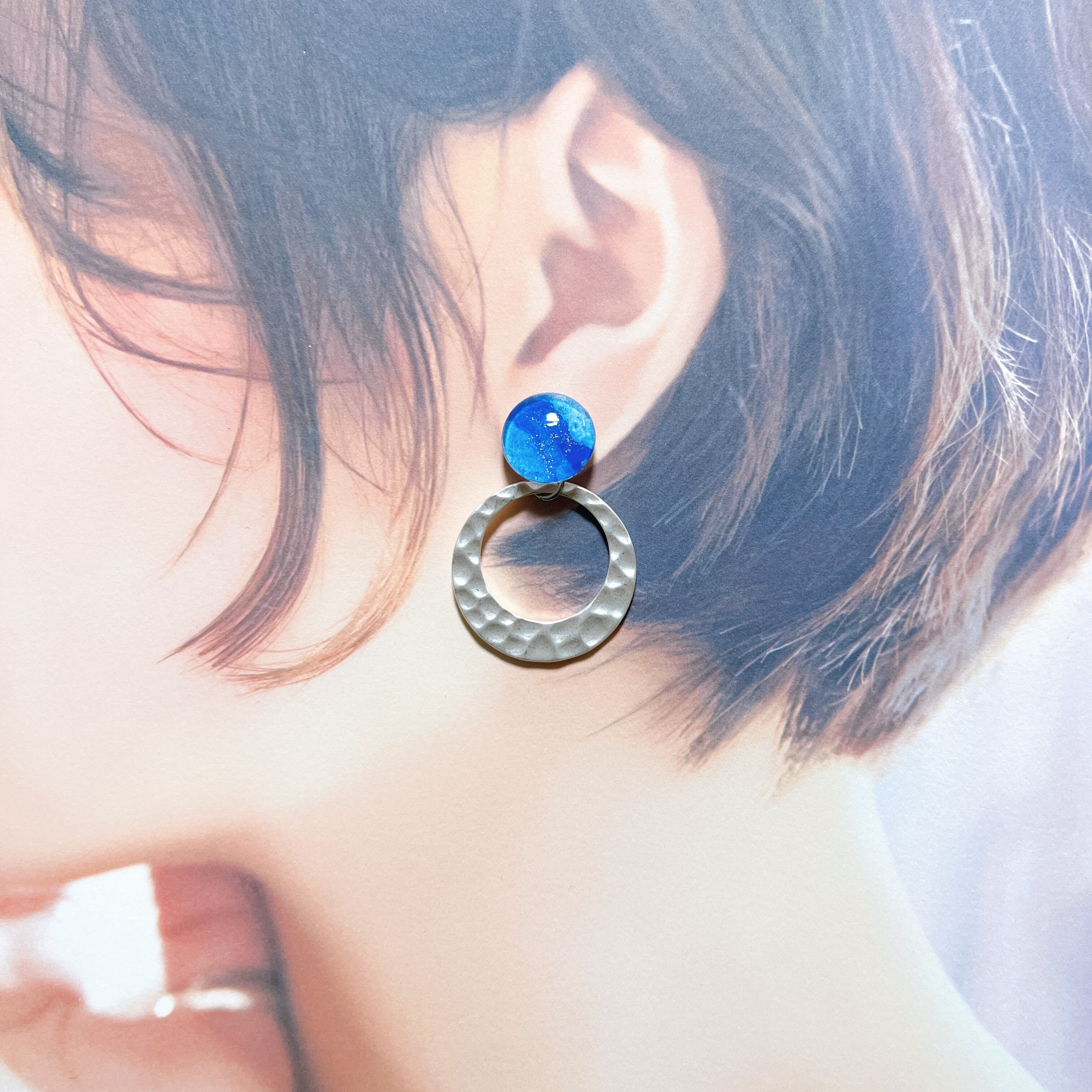 アルコールインクアートとシルバーパーツのピアスはパーツが付け外しできるようになっています。