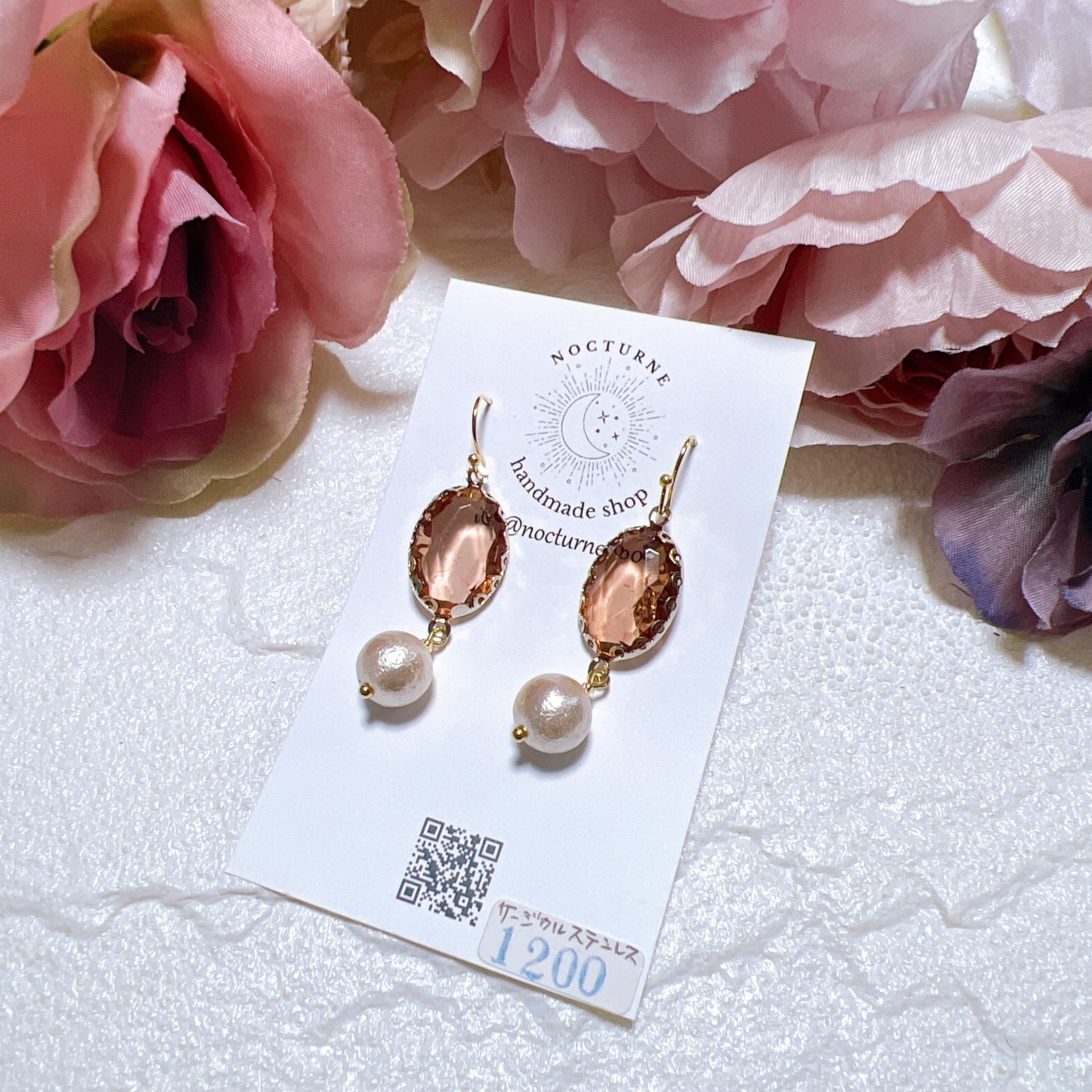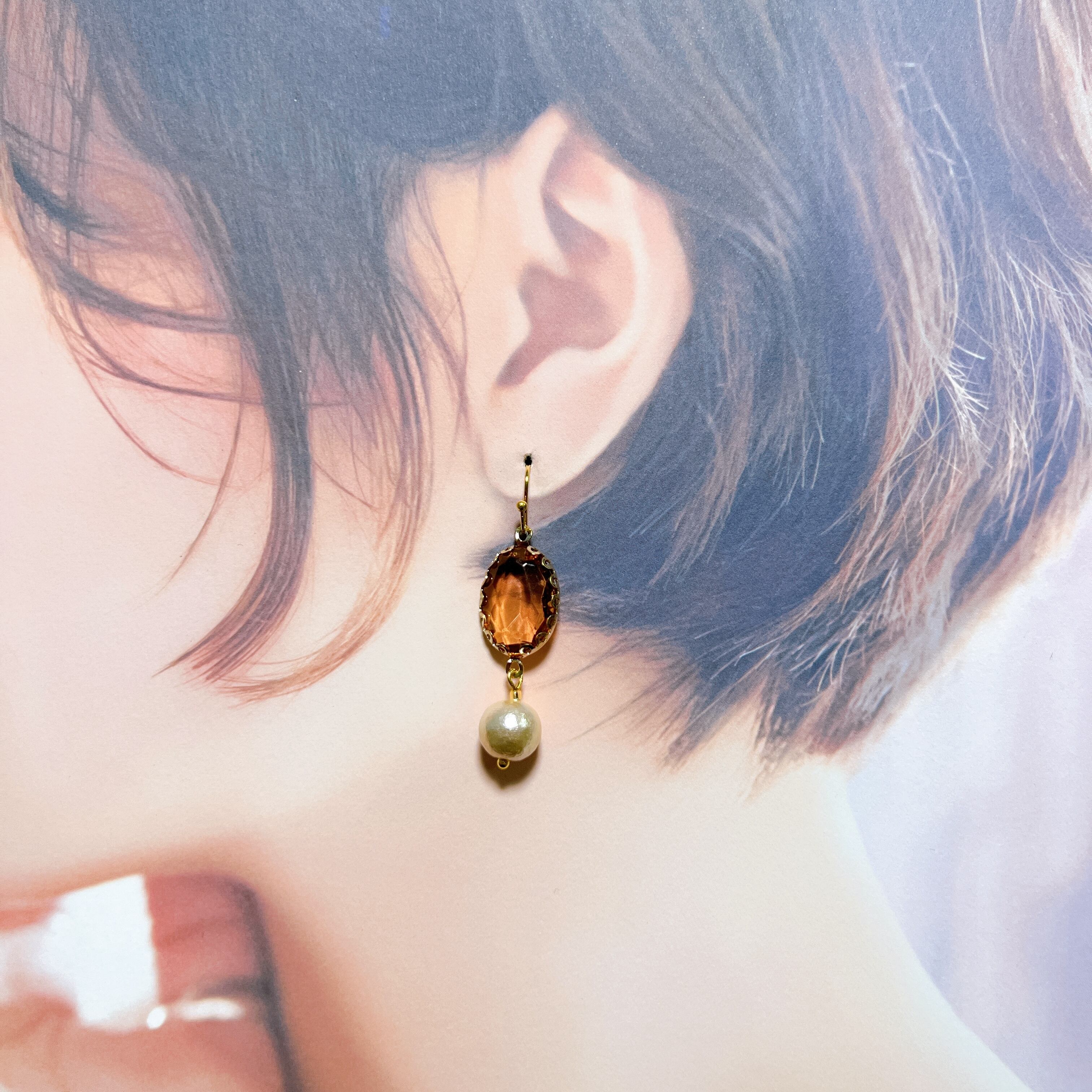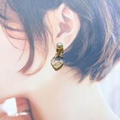 ベゼルセッティングクリスタルとコットンパールピアス