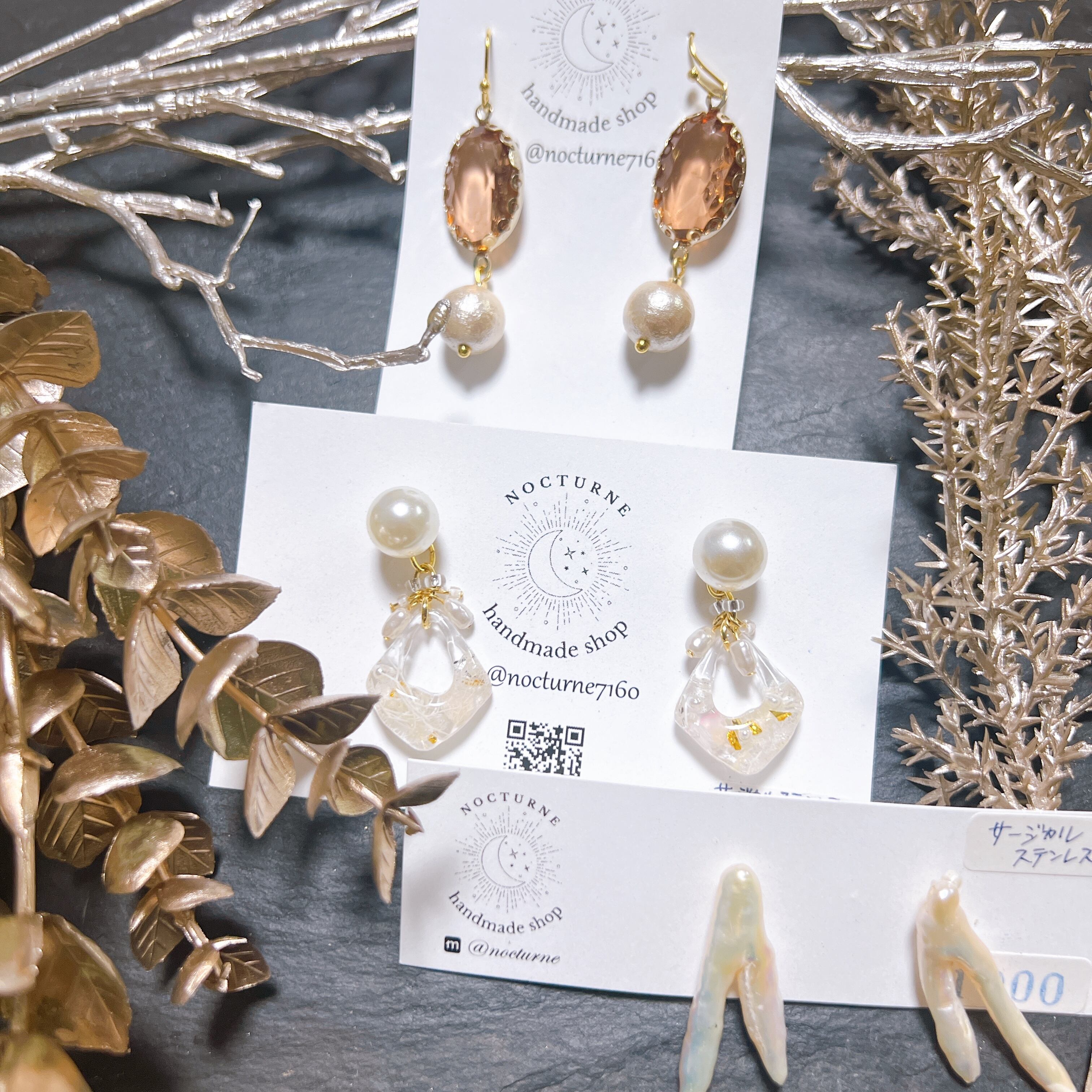 ピアスの金具部分、その他金具はすべてサージカルステンレスとなっています。