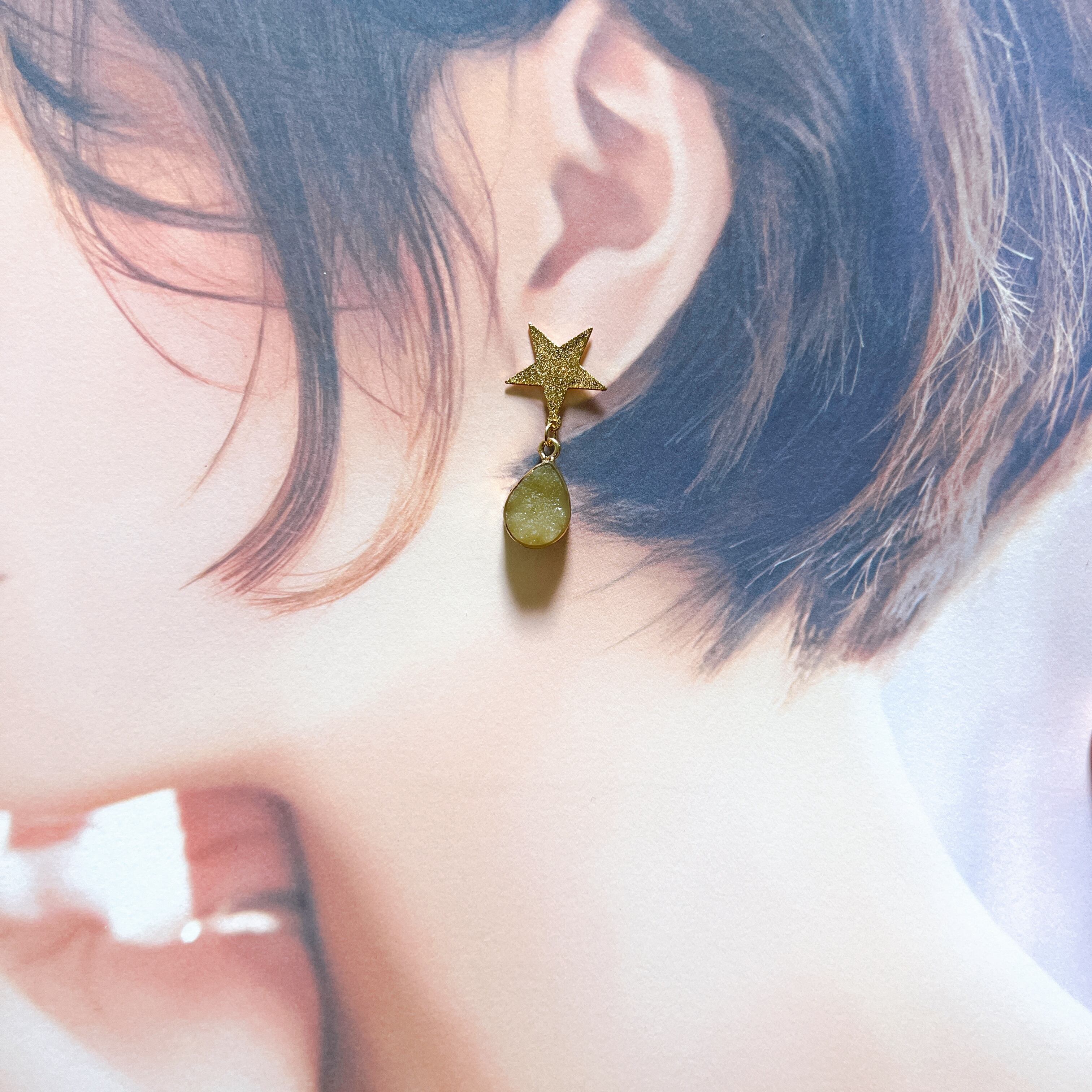 スターダストと天然石ラフカットのピアス