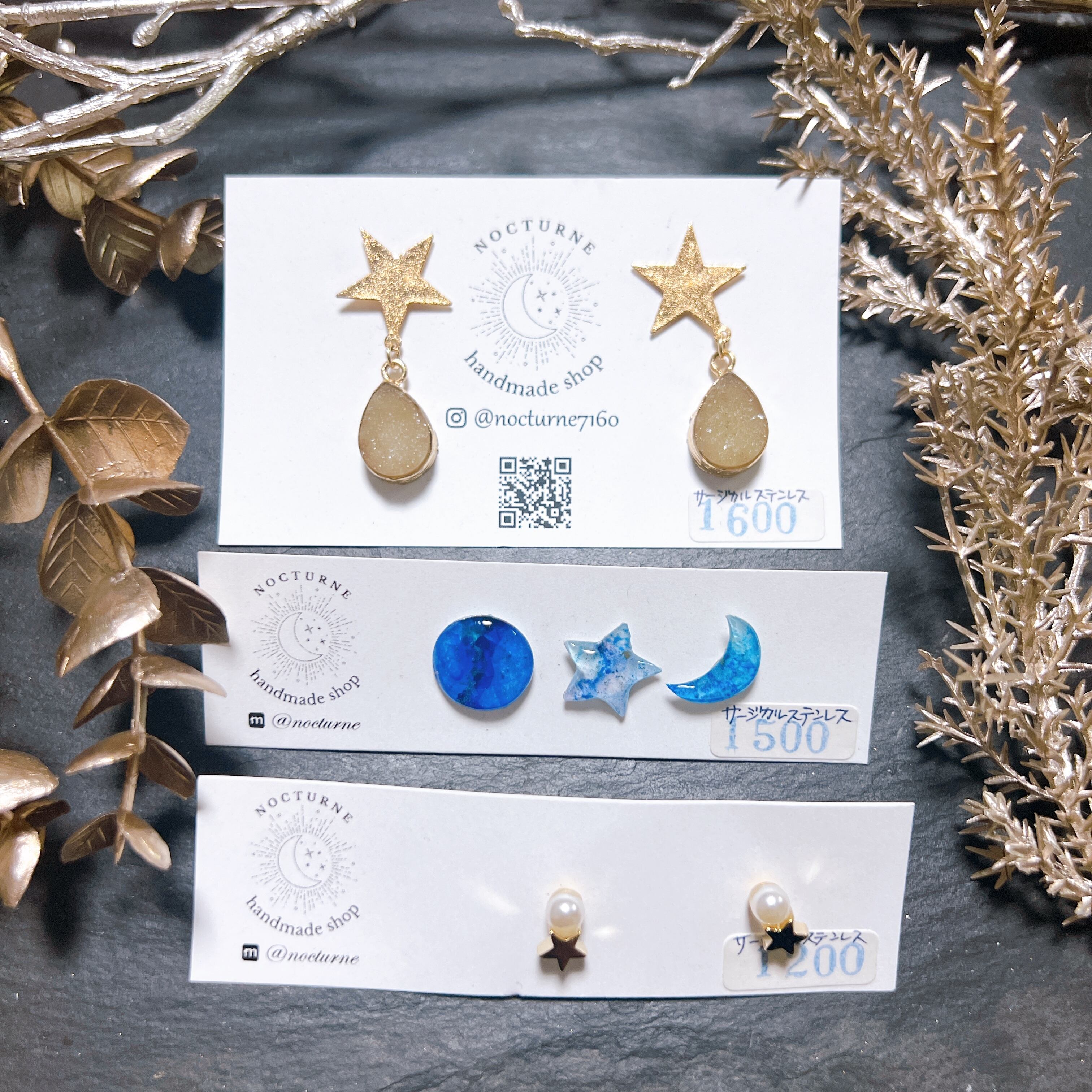 ピアスの金具部分、その他金具はすべてサージカルステンレスとなっています。
