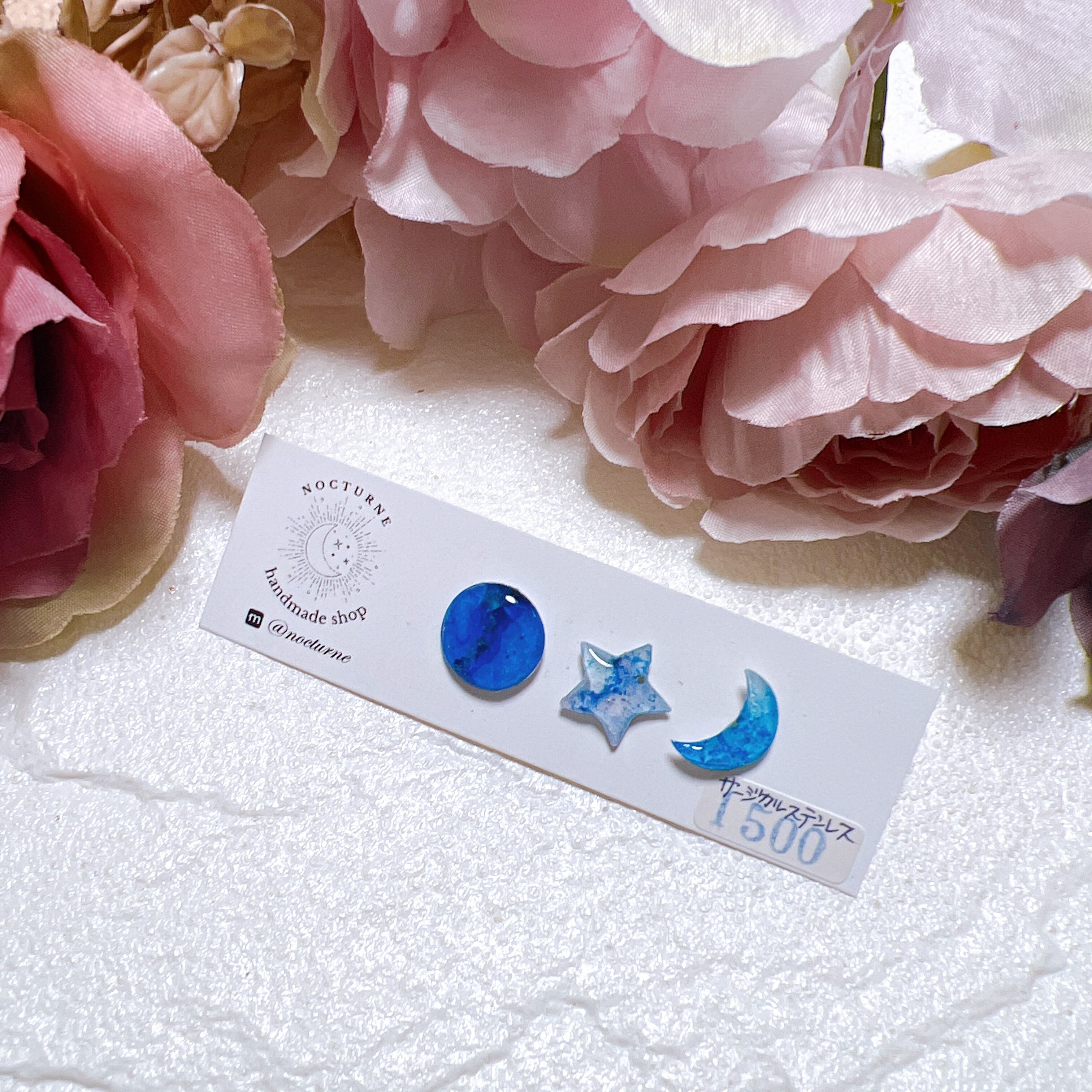 アルコールインクアートの月と星のレジンピアス